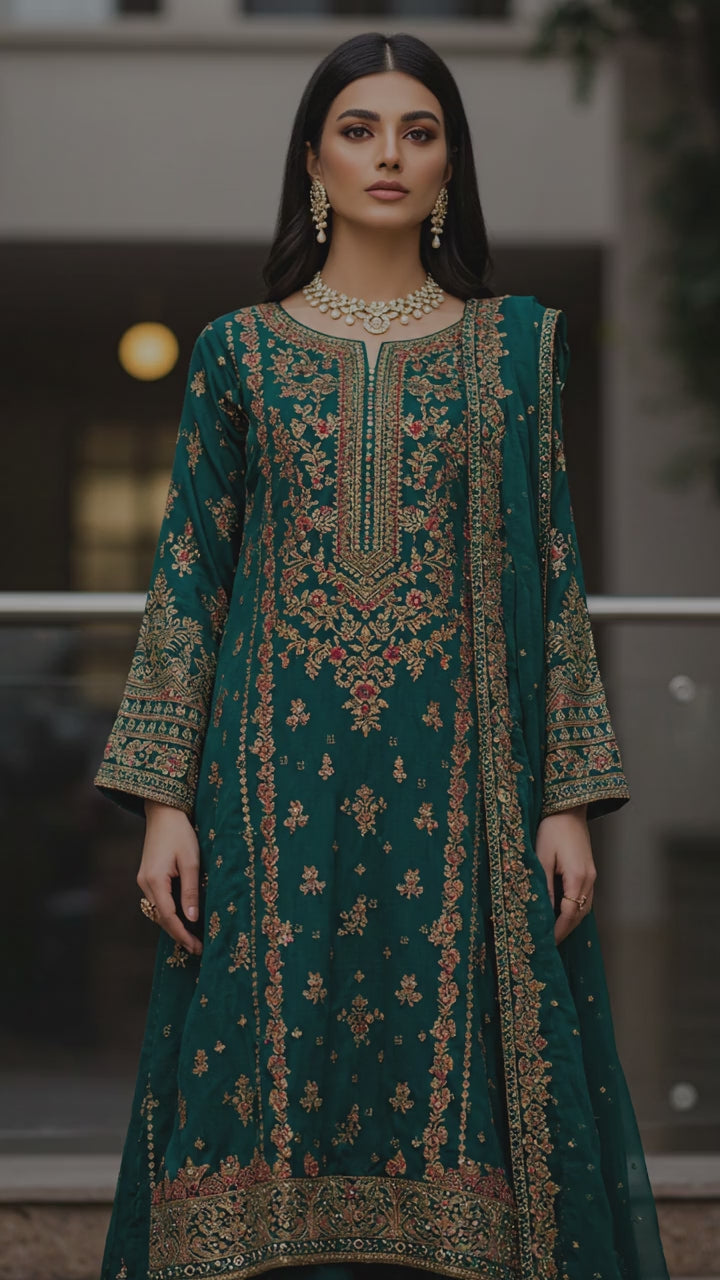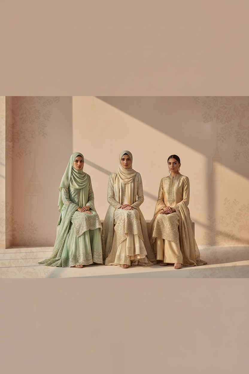 An embodiment of artistry and tradition, our collection weaves together the rich narratives of Indian and Pakistani textiles, alongside the exquisite craftsmanship of Turkish attire.